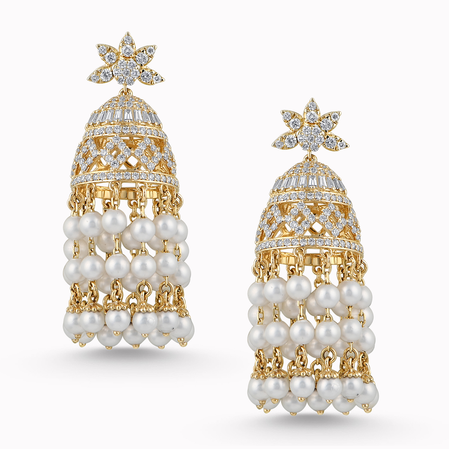 18 carat gold tassel necklace set featuring rare diamonds and gemstones can be styled with traditional as well as modern attire.