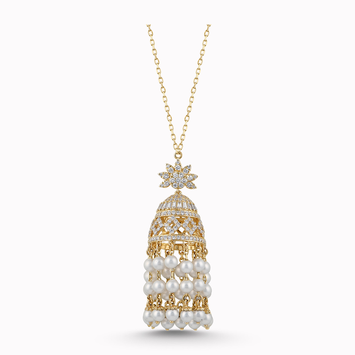 18 carat gold tassel necklace set featuring rare diamonds and gemstones can be styled with traditional as well as modern attire.