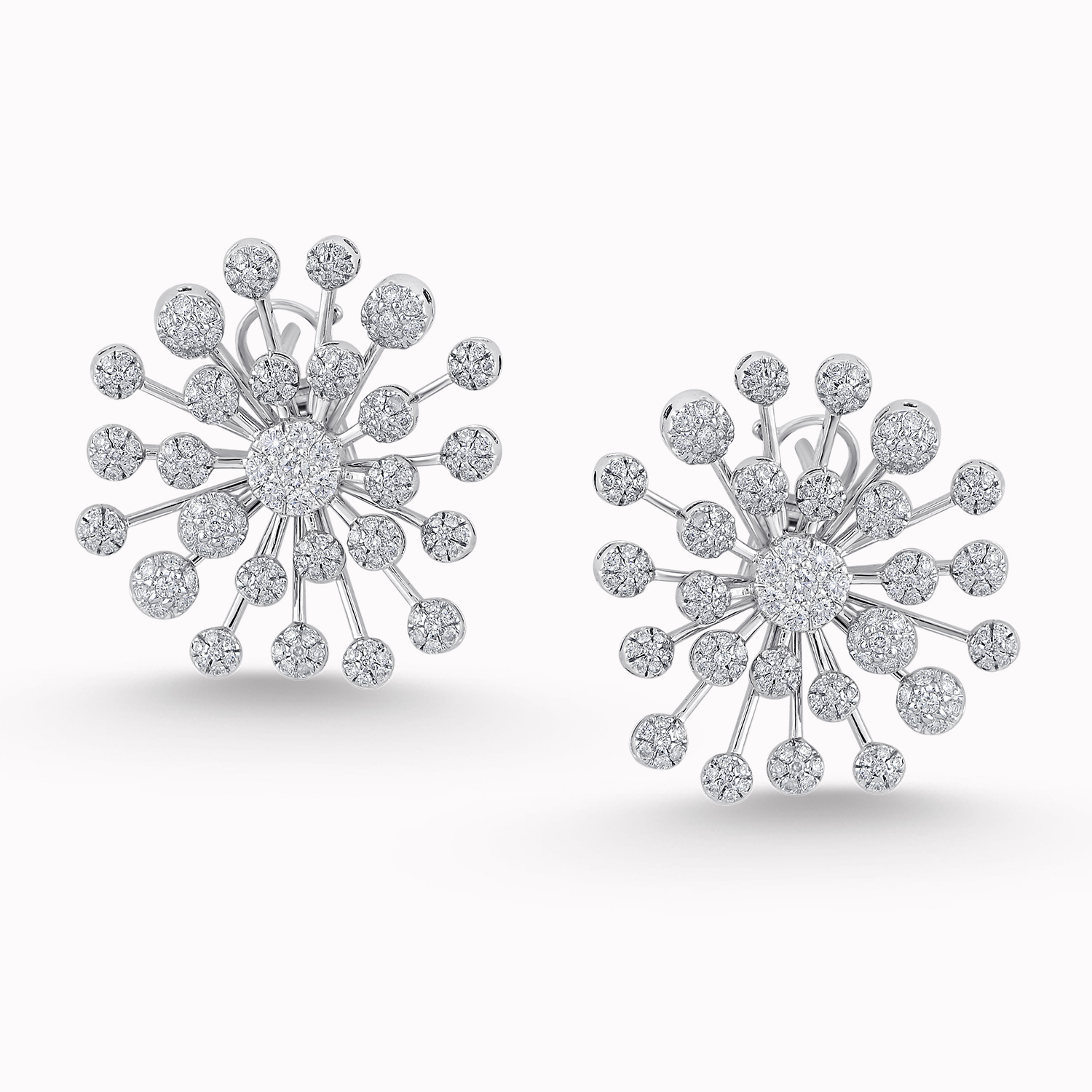 These firework stud earrings feature the bursts of fireworks display using paved diamonds.