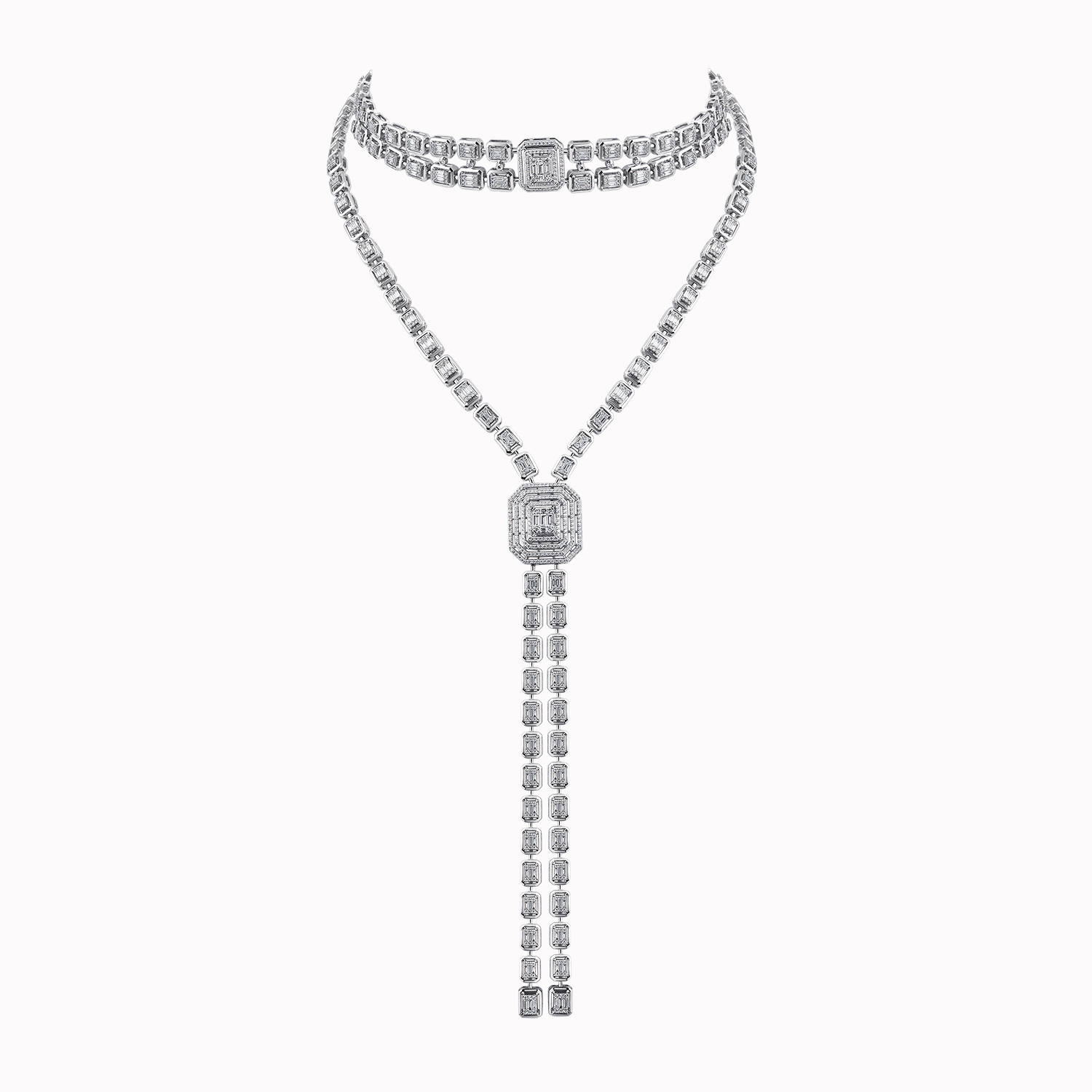An elegant diamond choker and necklace set crafted in 18karat white gold, a unique accessory for your luxury look.