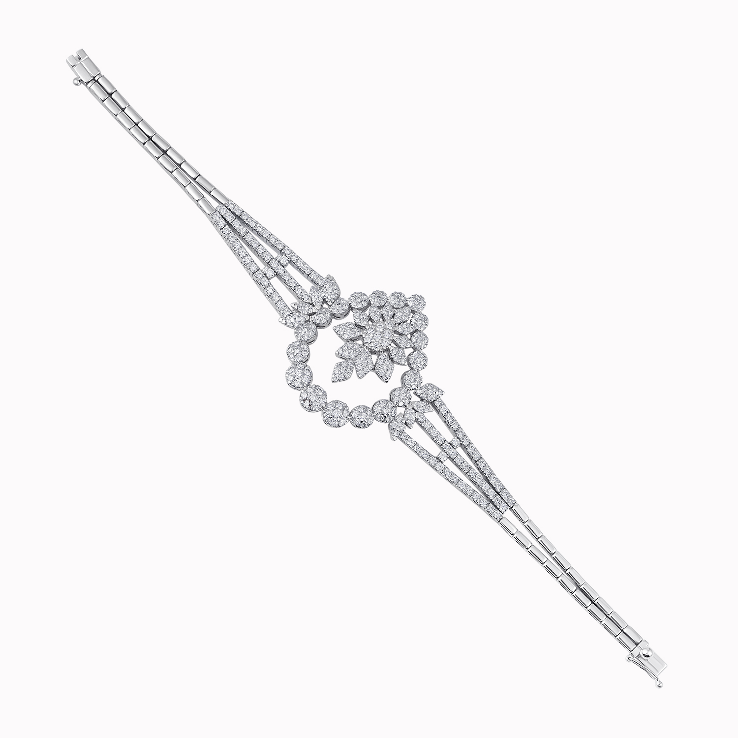 Handcrafted in 18 carat gold this flexible diamond bracelet is an art deco strap style bracelet featuring numerous diamonds.